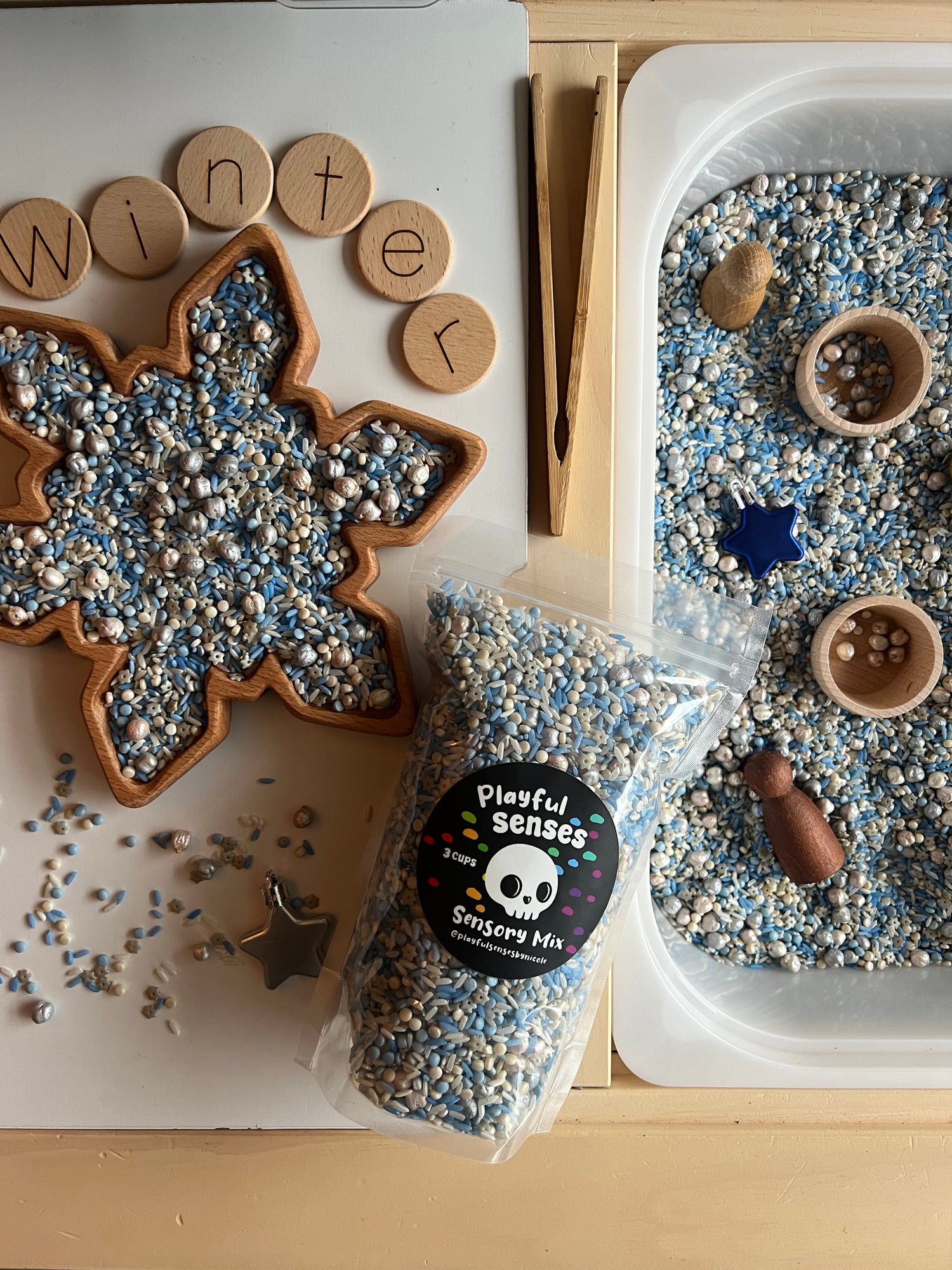 We strive to form engaging themed base sensory bin mixes, that foster learning through play.