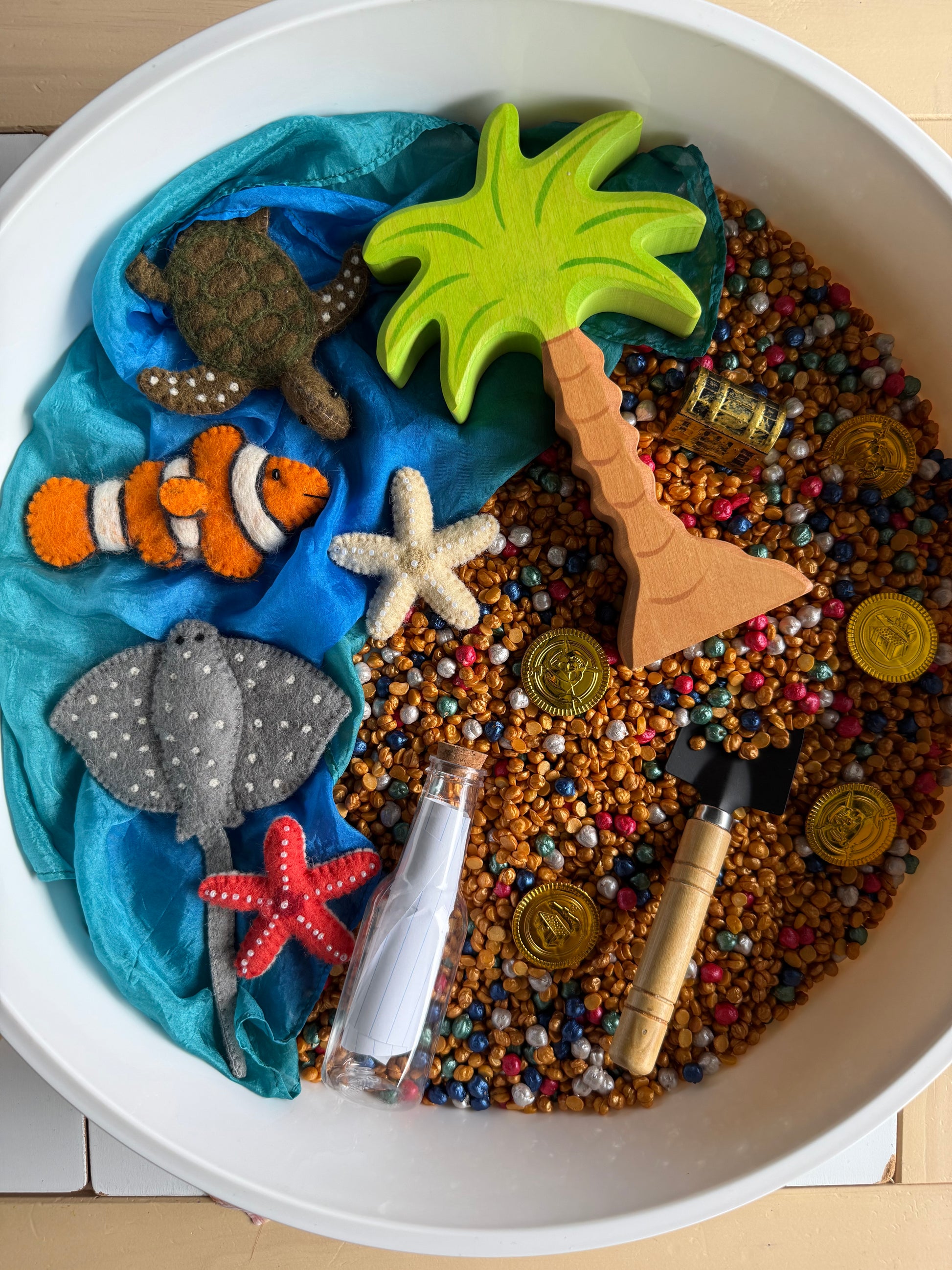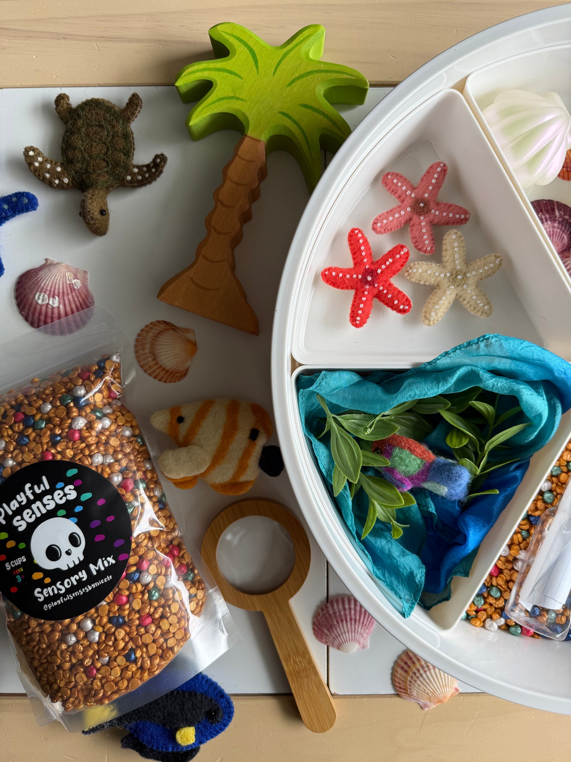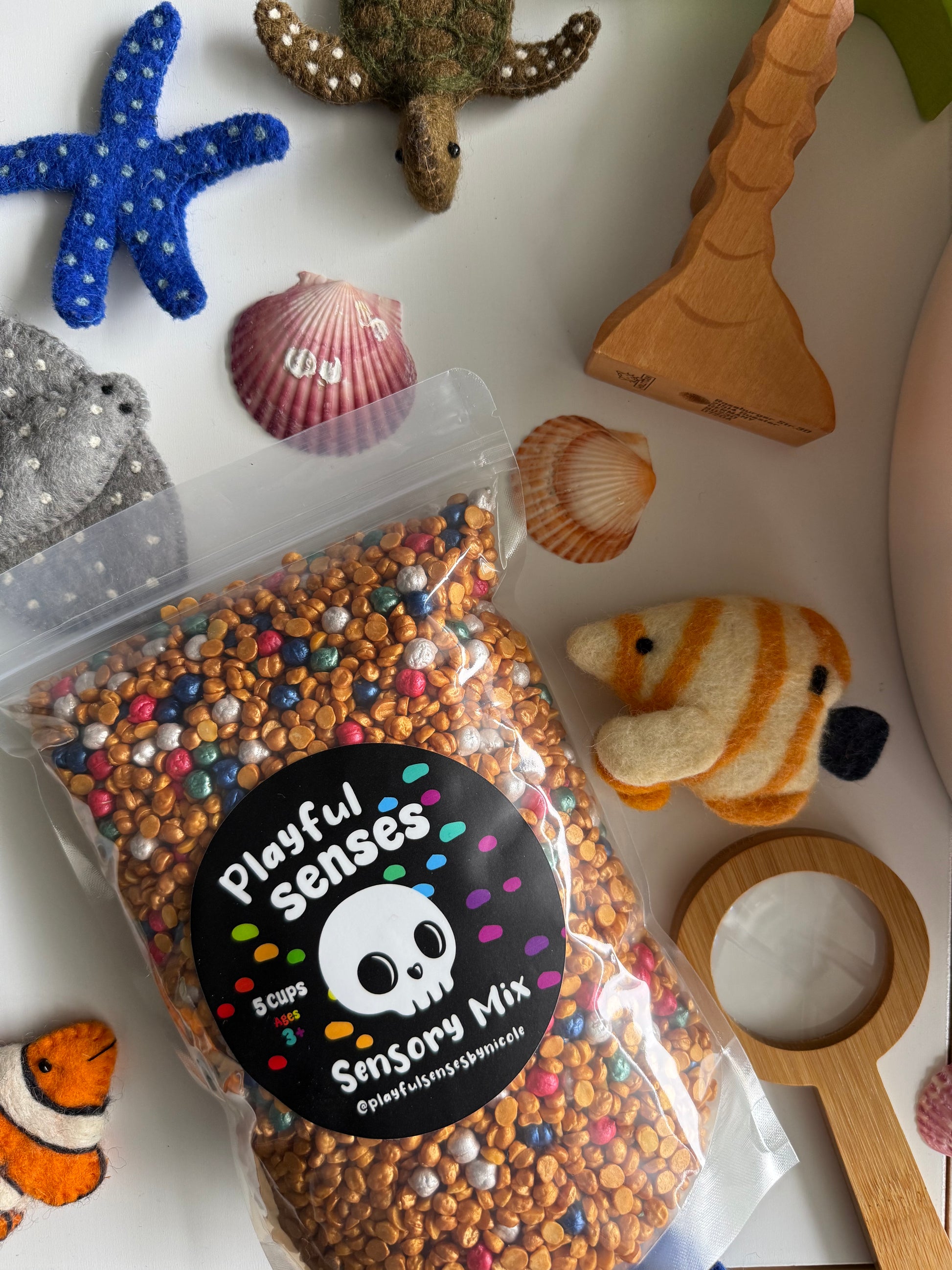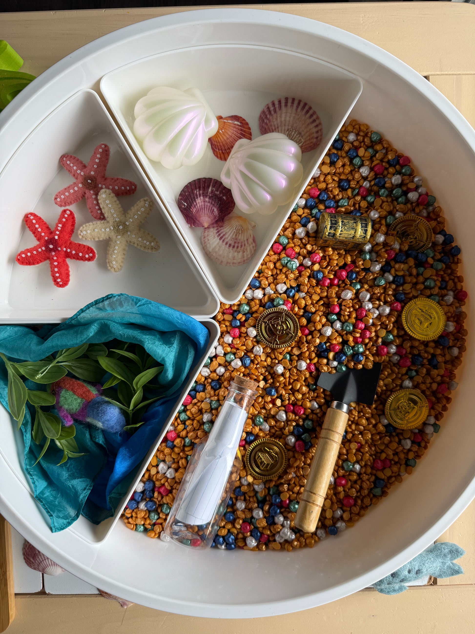 Don’t have a sensory table? Not a problem. Our mixes can be used in a shallow container or tray.