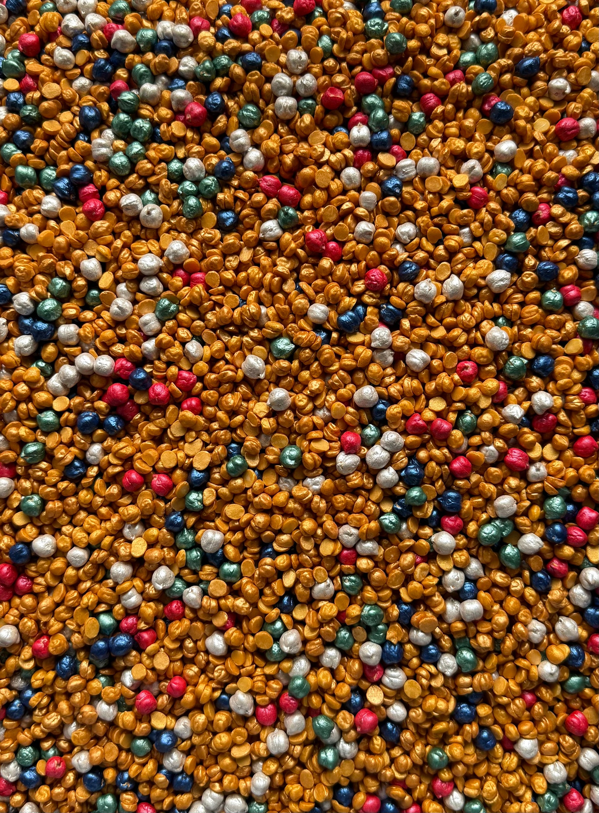 All mixes are coated with non-toxic acrylic paint. Colours may vary from batch to batch as all materials are coated by hand. Amount of pasta shapes will vary from bag to bag.